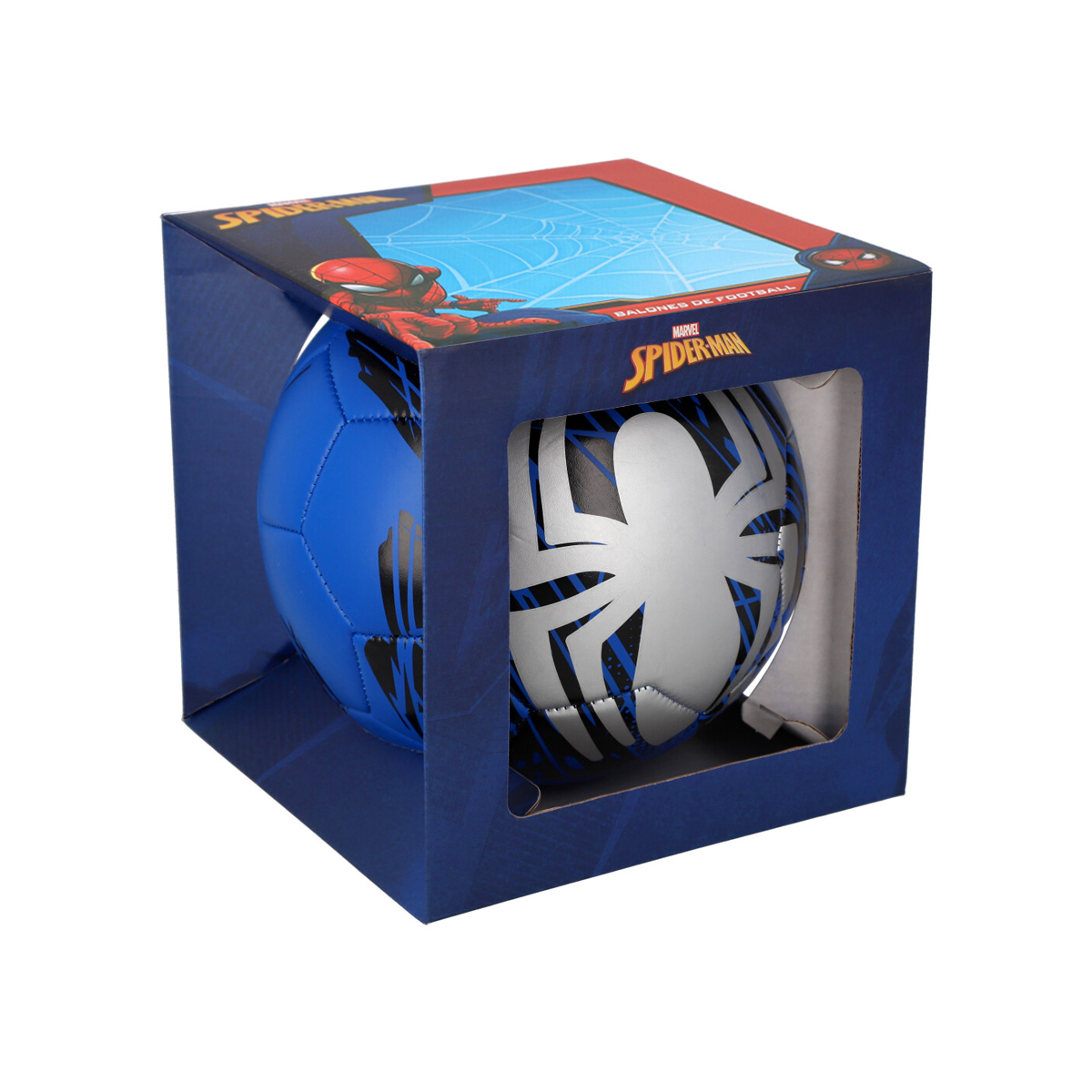 Balón de Fútbol con un diseño exclusivo de Spider-Man, acabado en TPU y cosido a máquina.