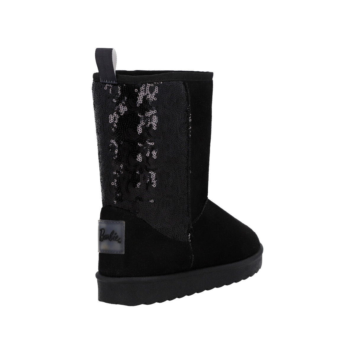 Botas Barbie textiles con cálido forro de piel sintética y diseño con lentejuelas en la parte trasera.