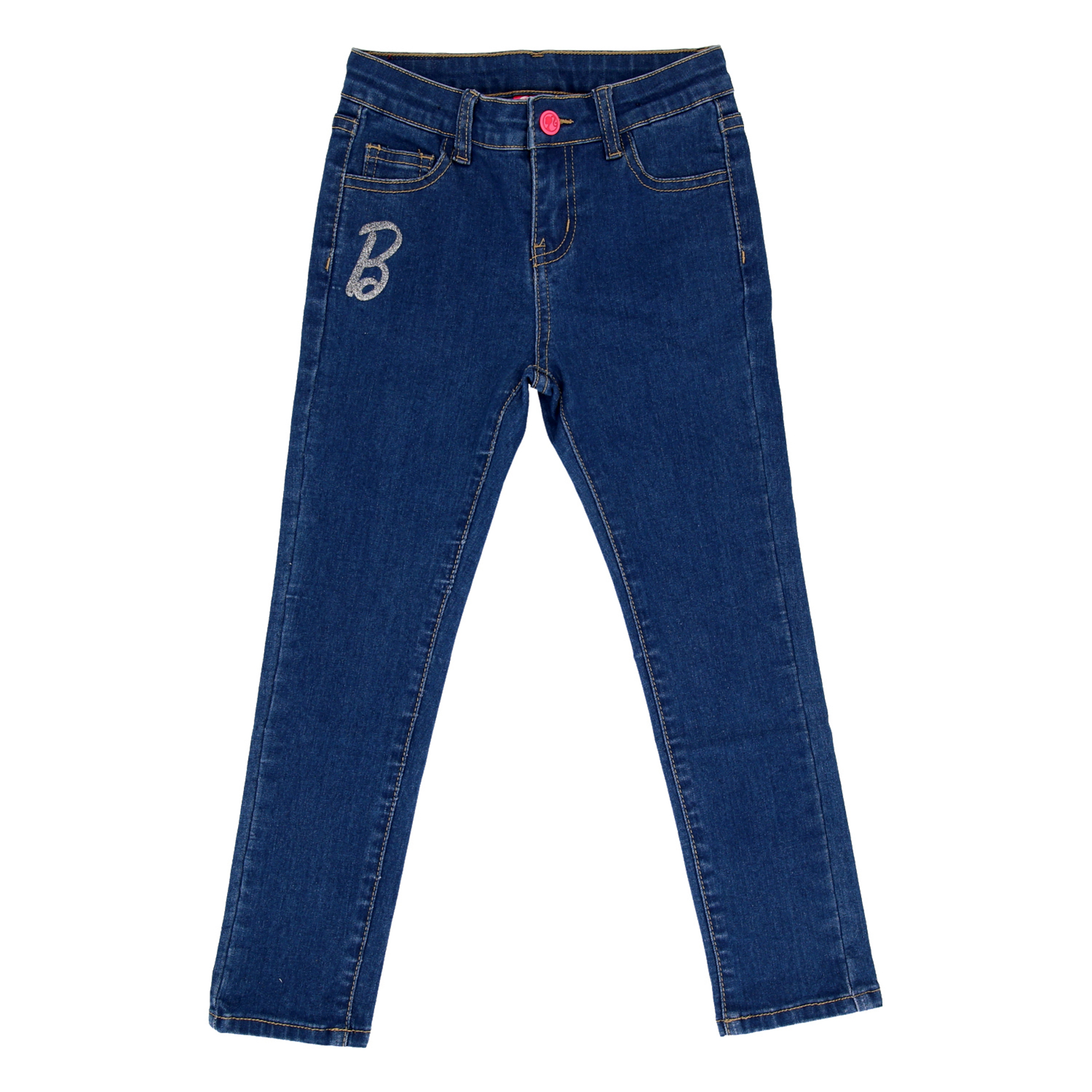 Jeans Barbie elasticado, corte recto, azul oscuro.