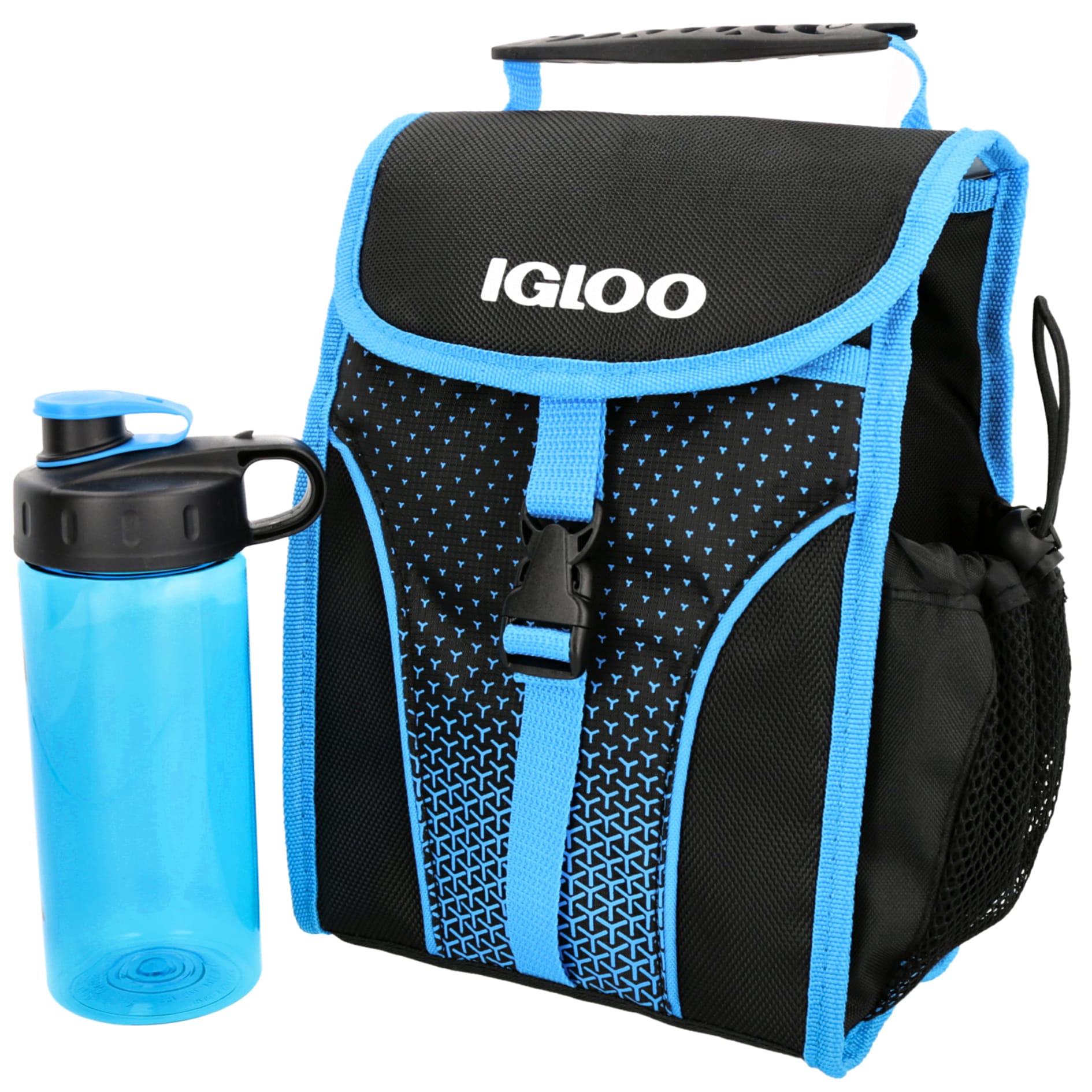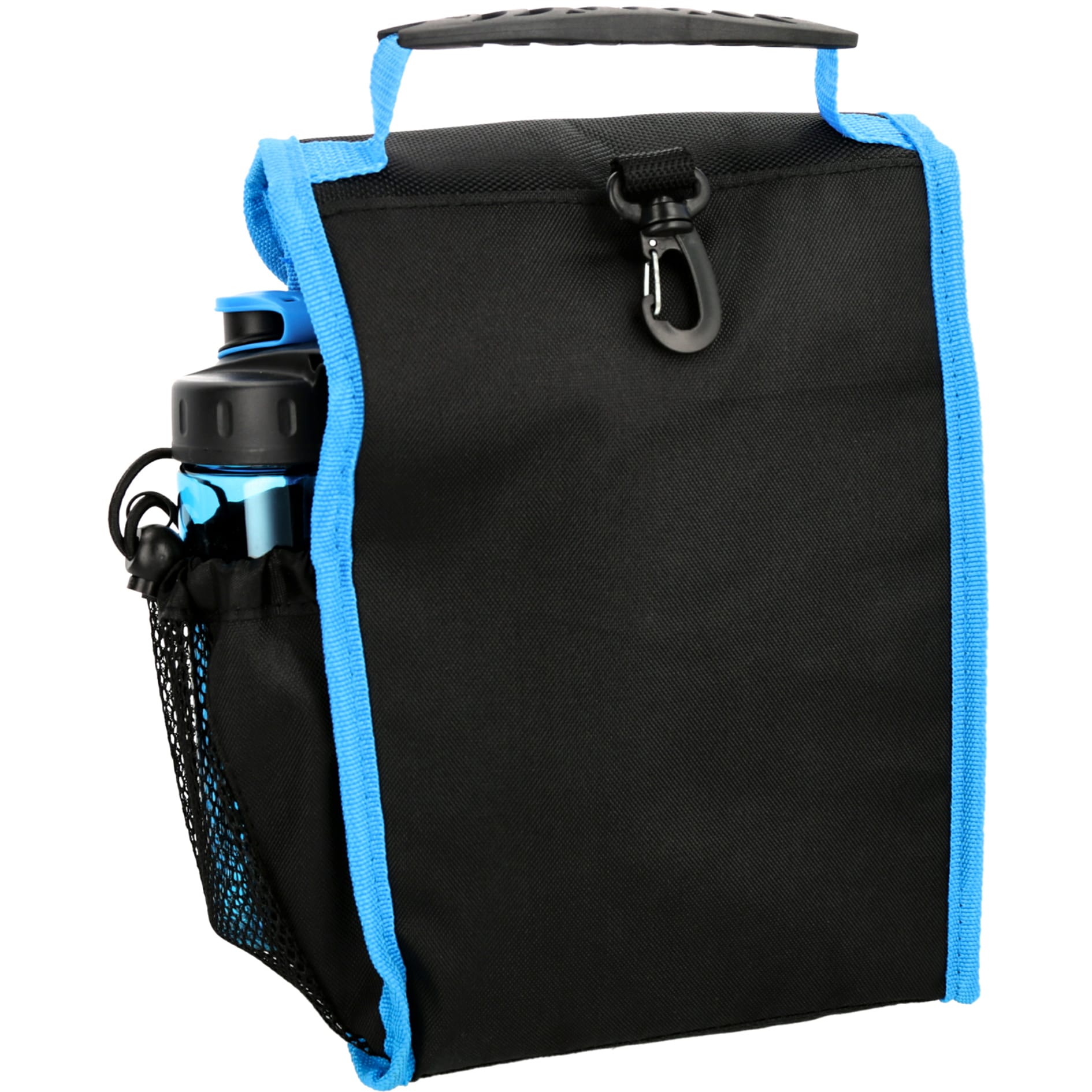 Lonchera textil, con bolsillos y asas para transportar con facilidad tus alimentos a cualquier lugar. Incluye una botella libre de BPA.