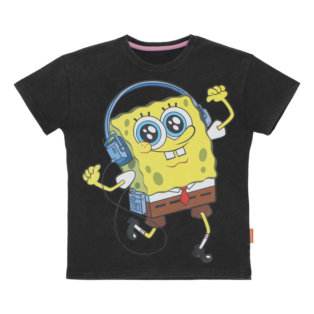 Polera manga corta con estampado de Bob Esponja y tratamiento de lavado.