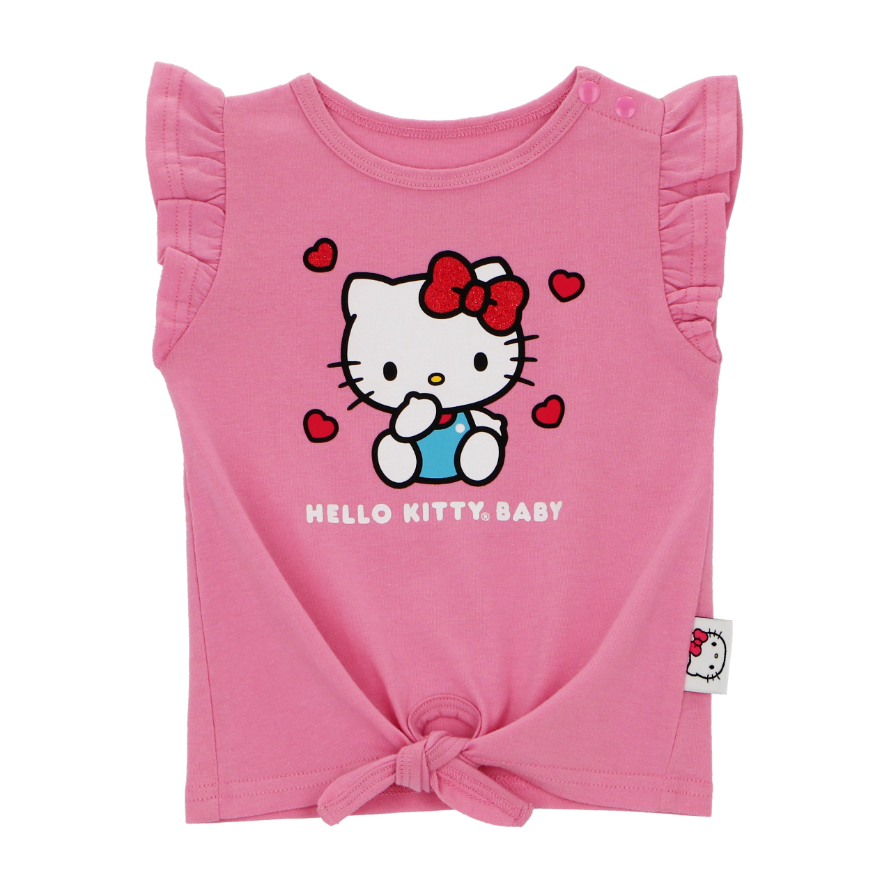 Polera manga corta con estampado glitter de Hello Kitty y amarra en delantero.