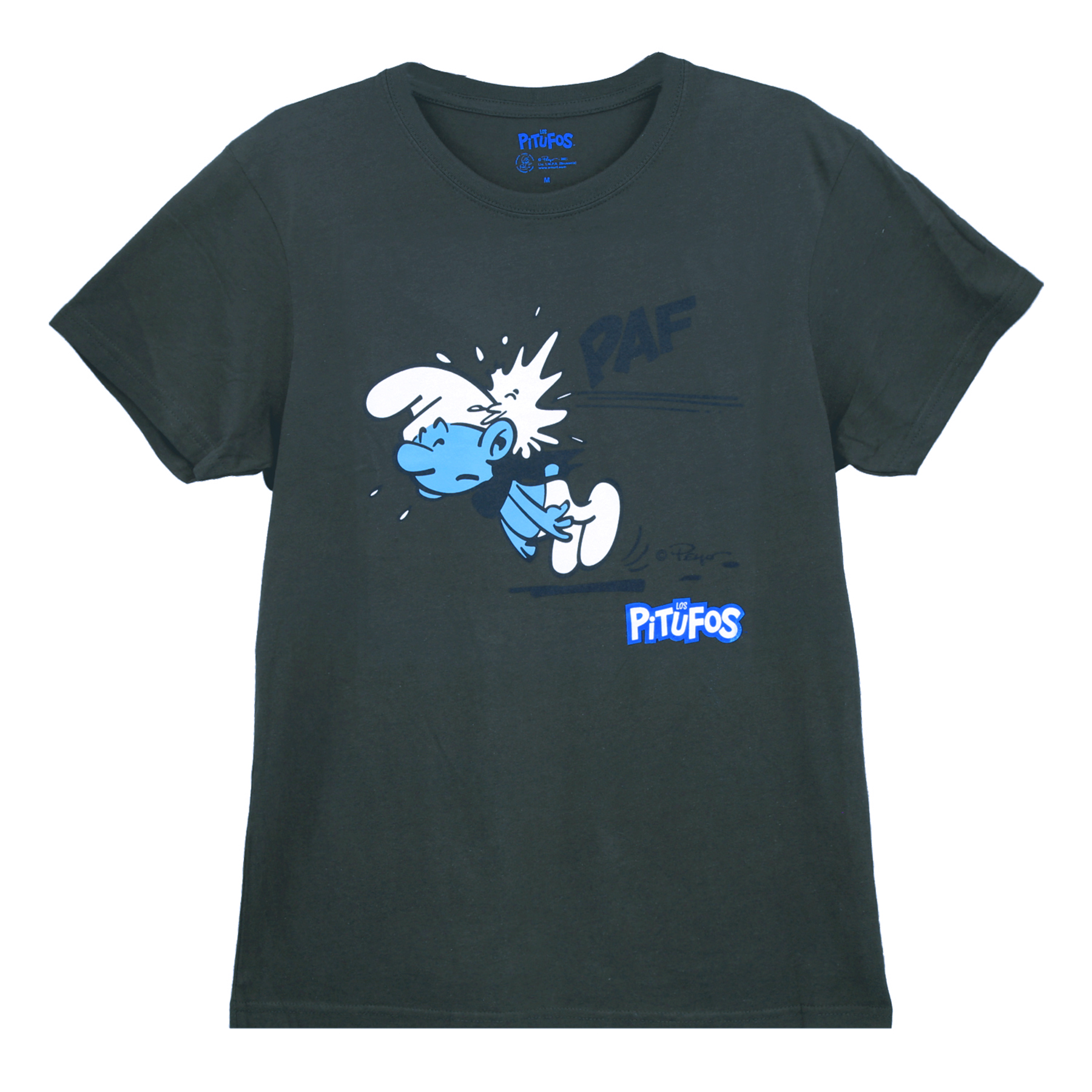 Polera manga corta, con estampado de Los Pitufos. Confeccionada en algodón de producción sostenible.