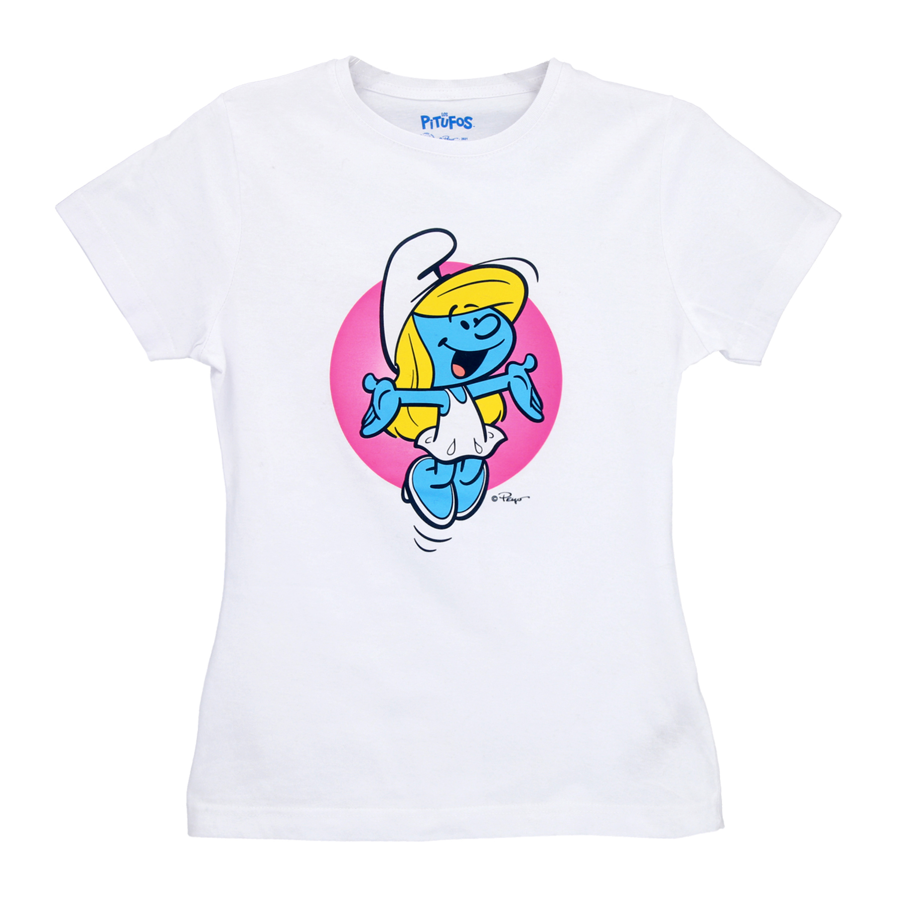 Polera manga corta, con estampado de Los Pitufos. Confeccionada en algodón de producción sostenible.