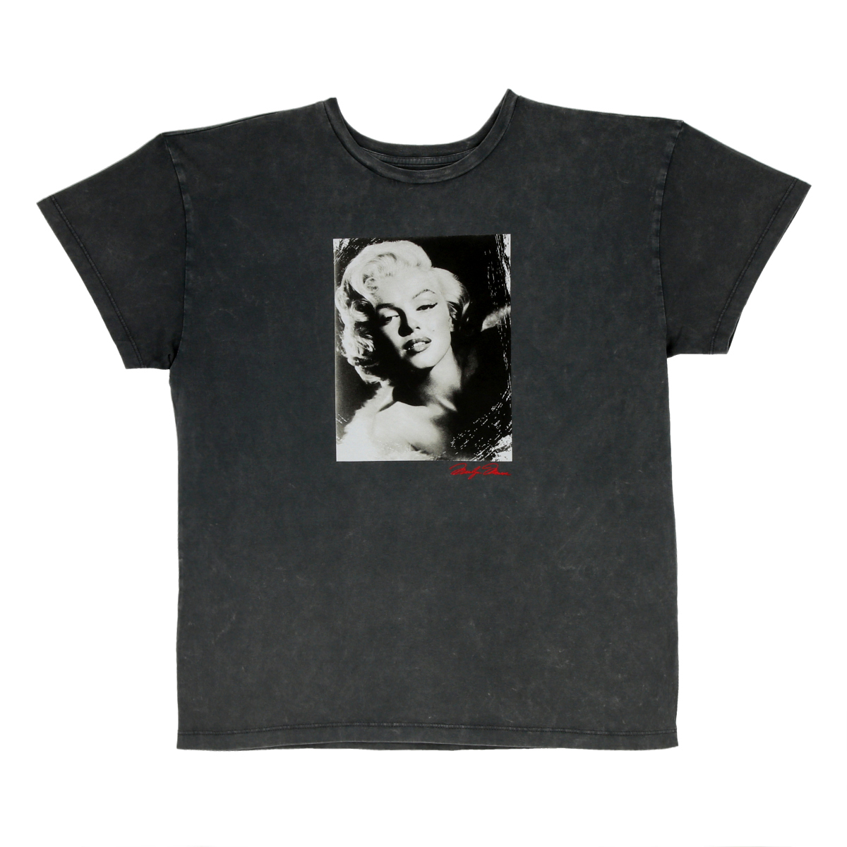 Polera manga corta, con estampado de Marilyn Monroe y tratamiento de lavado.