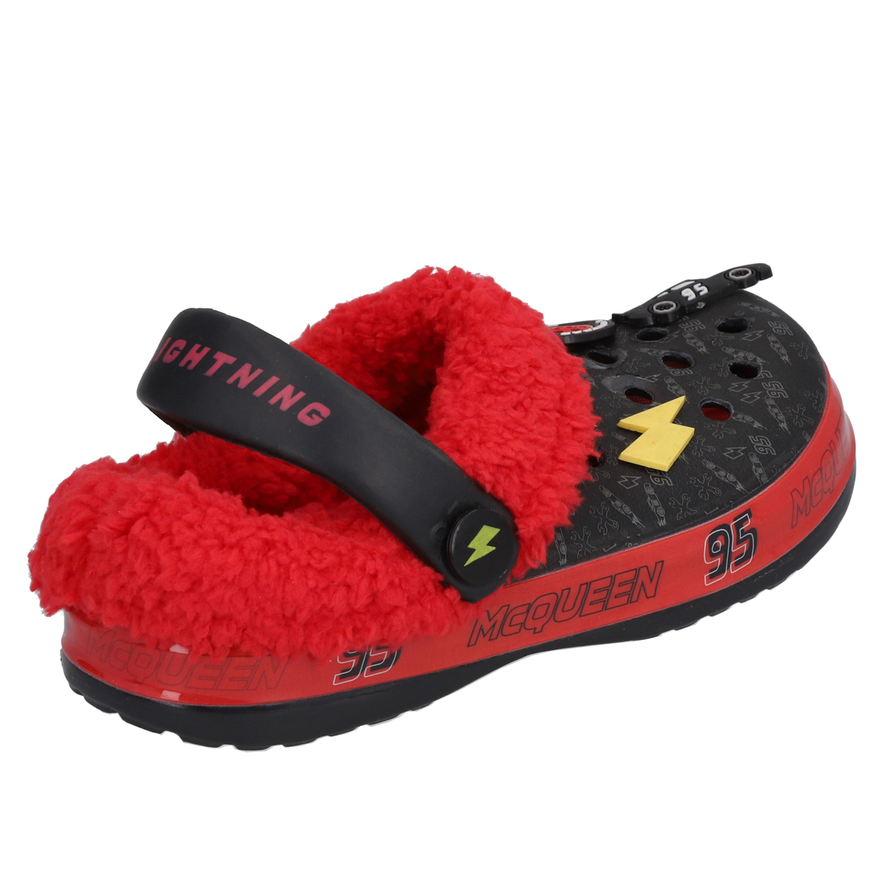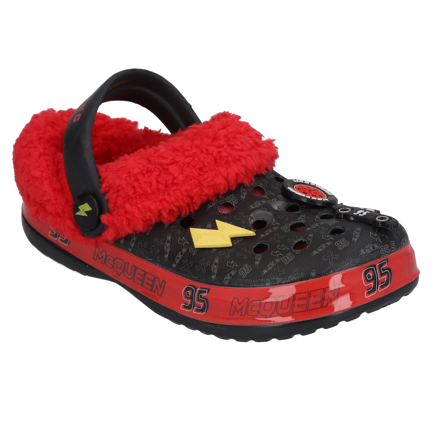 Sandalia Cars con interior forrado con chiporro sintético, liviana y resistente. Incluye pins coleccionables.