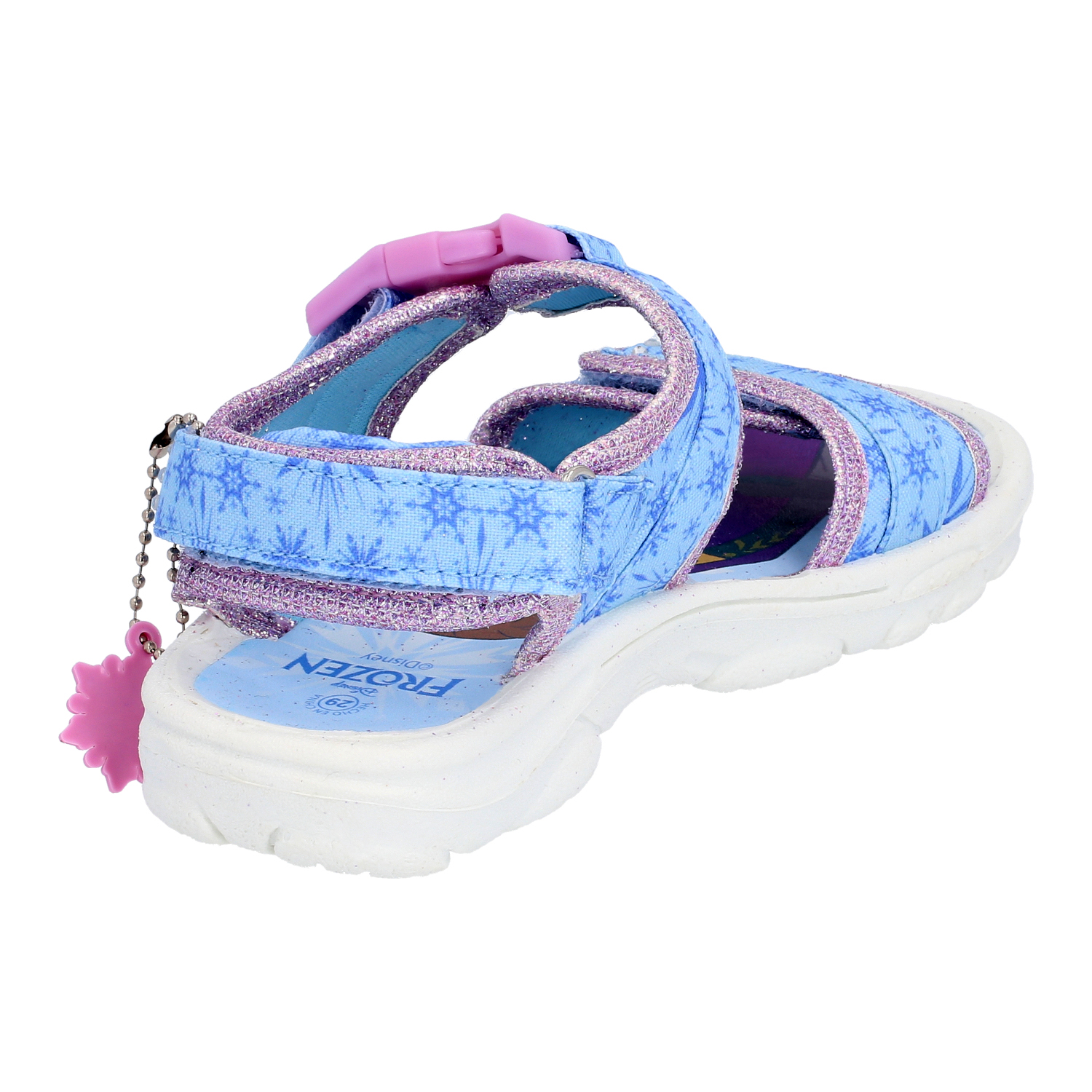 Sandalia Frozen con 2 correas y talonera ajustables. Con planta diseñada para terreno irregular y actividades al aire libre. Diseño con detalles metalizados y glitter