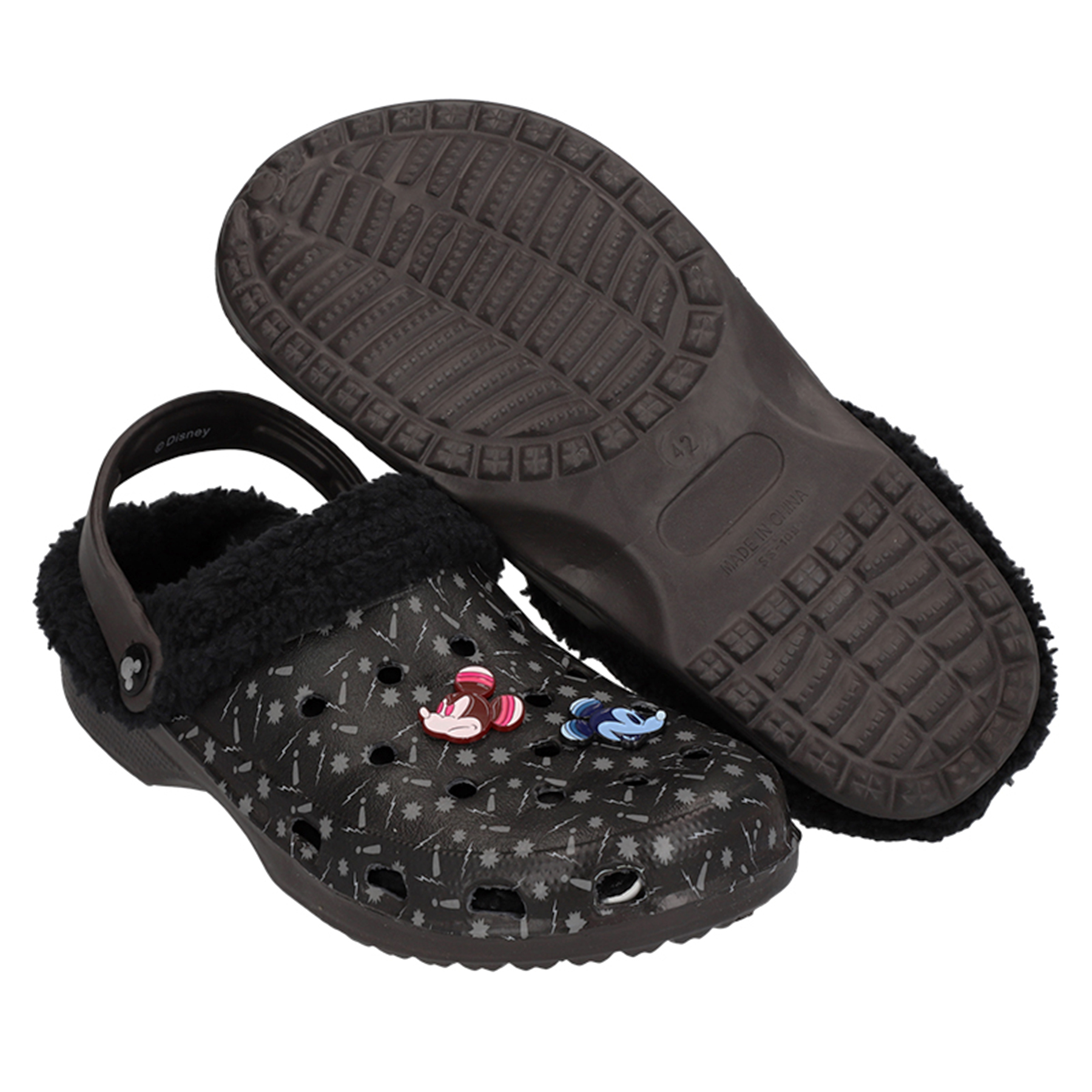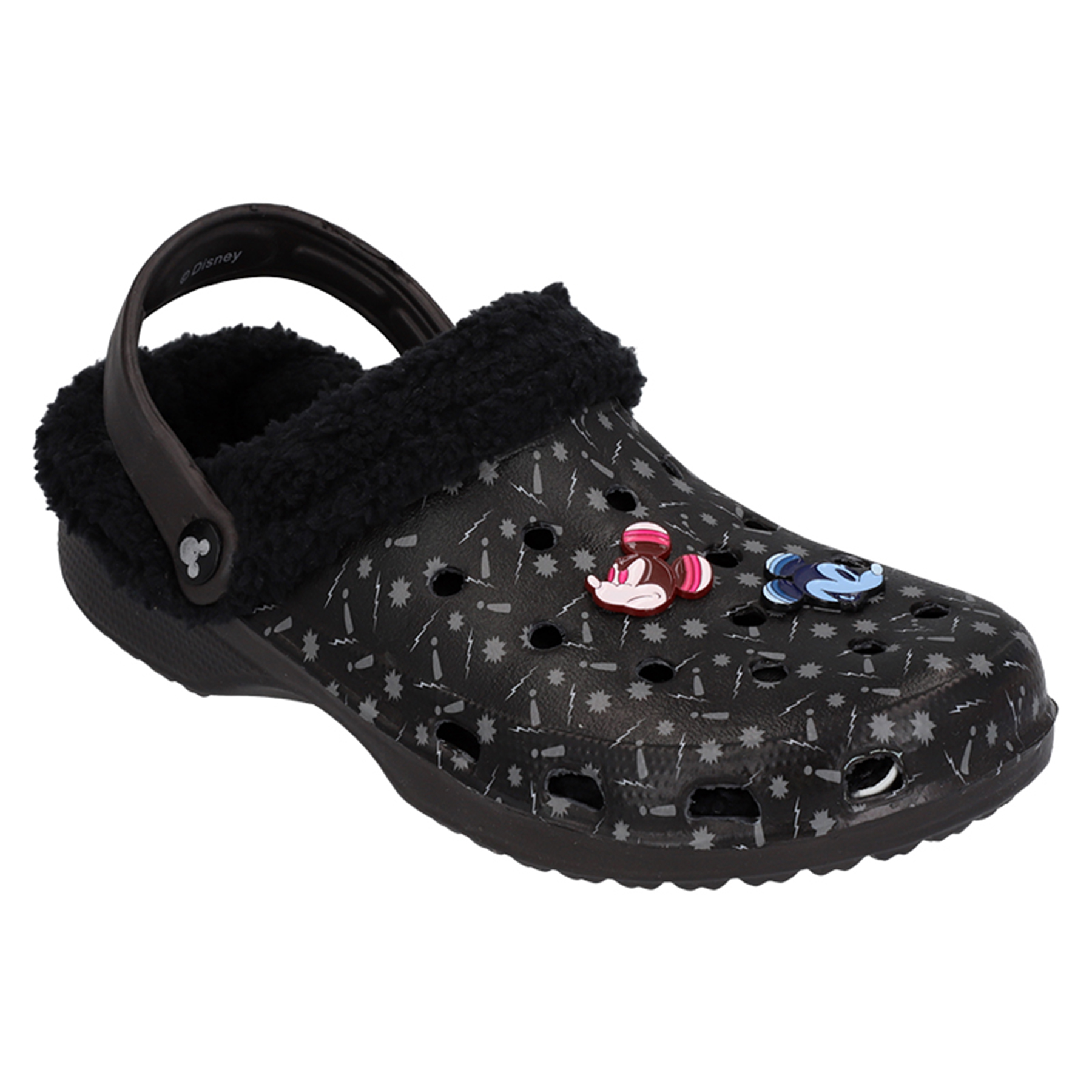 Sandalia Mickey Mouse con interior forrado con chiporro sintético, liviana y resistente. Incluye pins coleccionables.