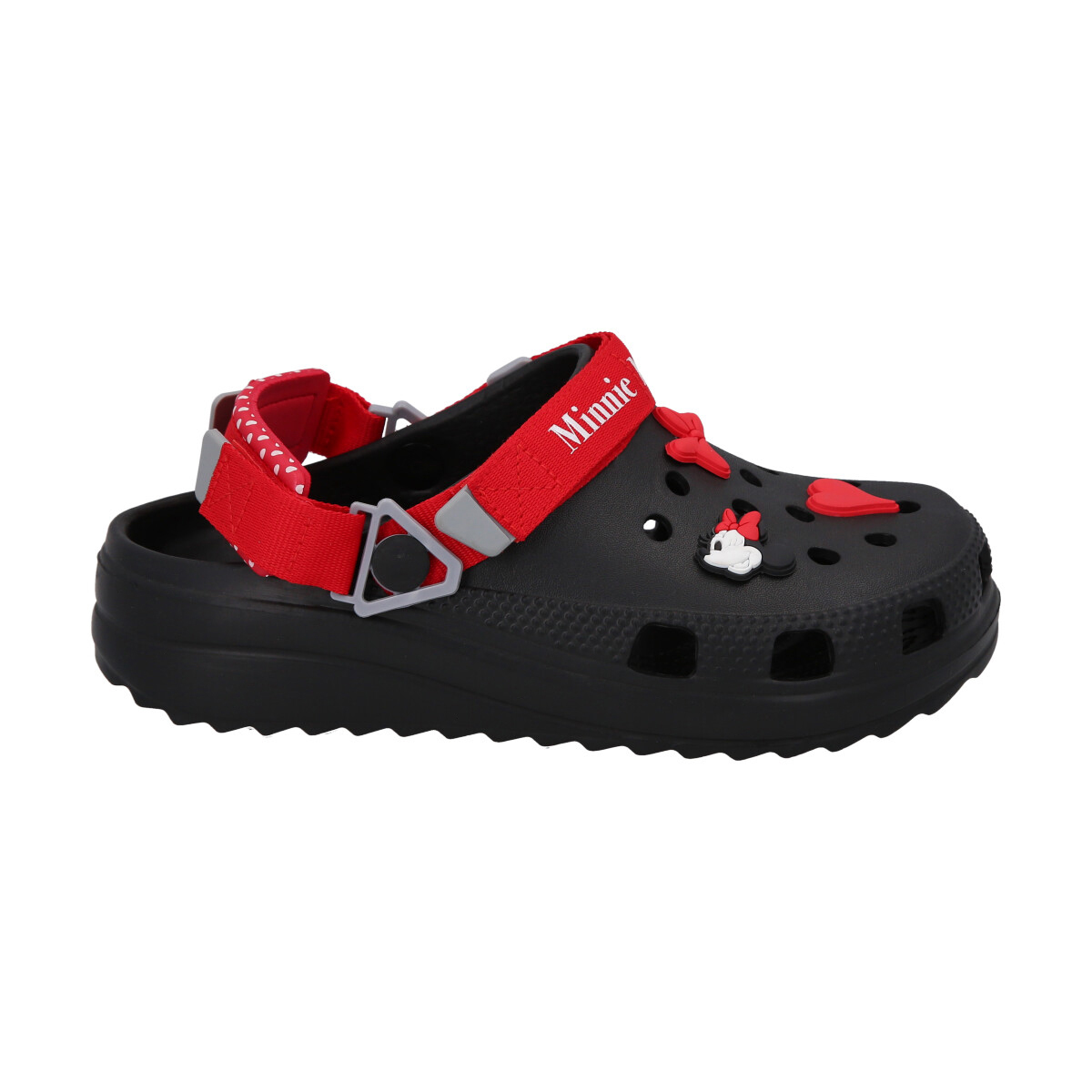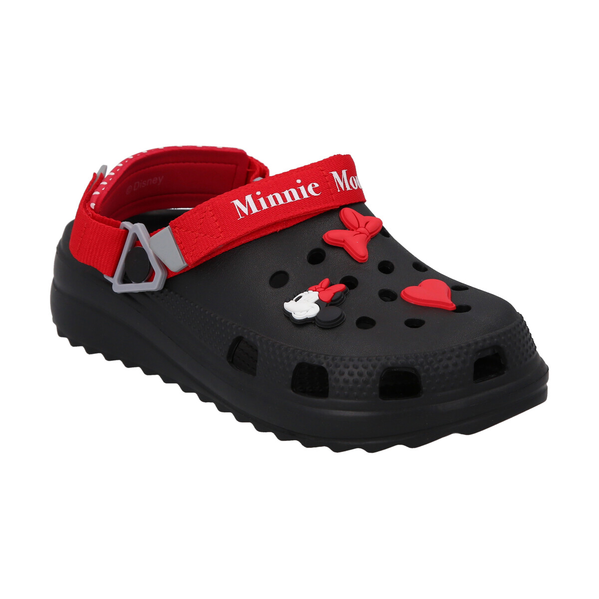 Sandalia Minnie Mouse, liviana y resistente. Incluye pins coleccionables.