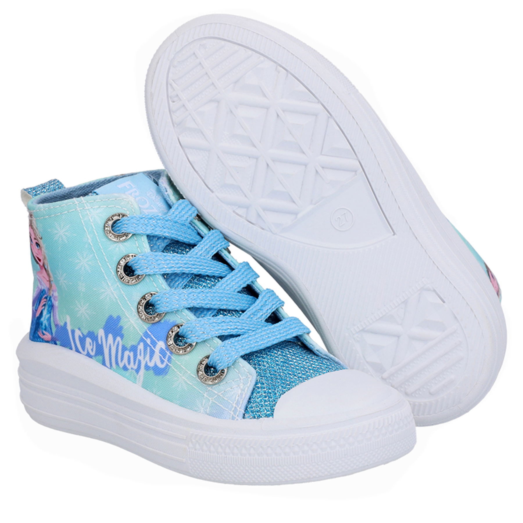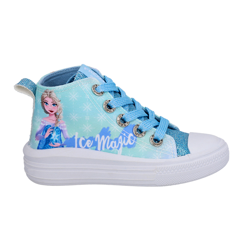 Zapatilla urbana Frozen de lona caña alta, con plataforma, cordones y lengüeta de acabado metálico.