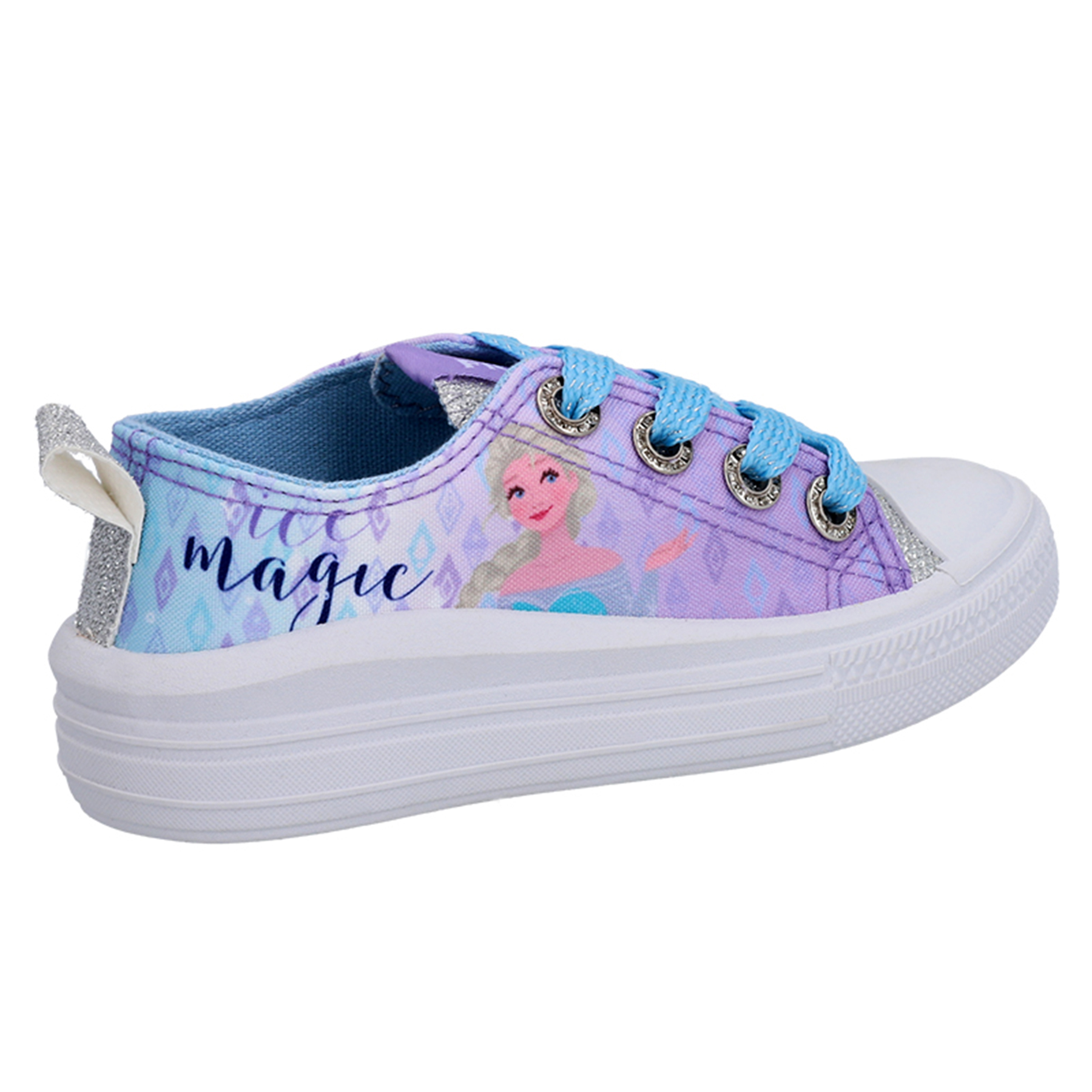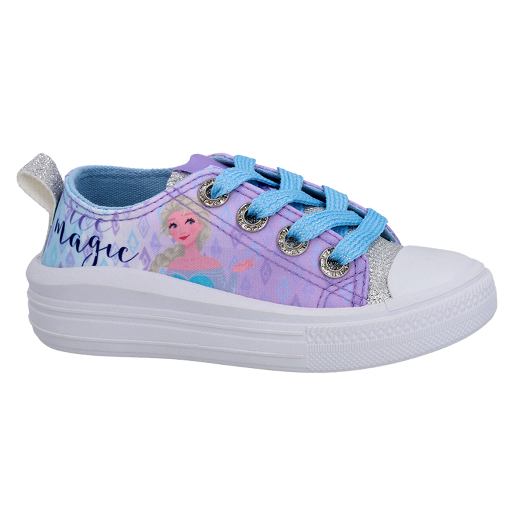 Zapatilla urbana Frozen de lona, con plataforma, lengüeta con acabado metálico y pasa cordones con strass.
