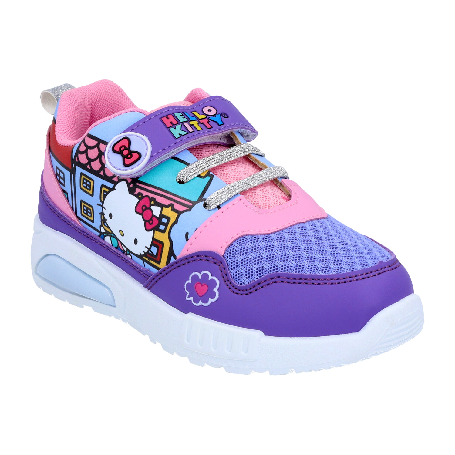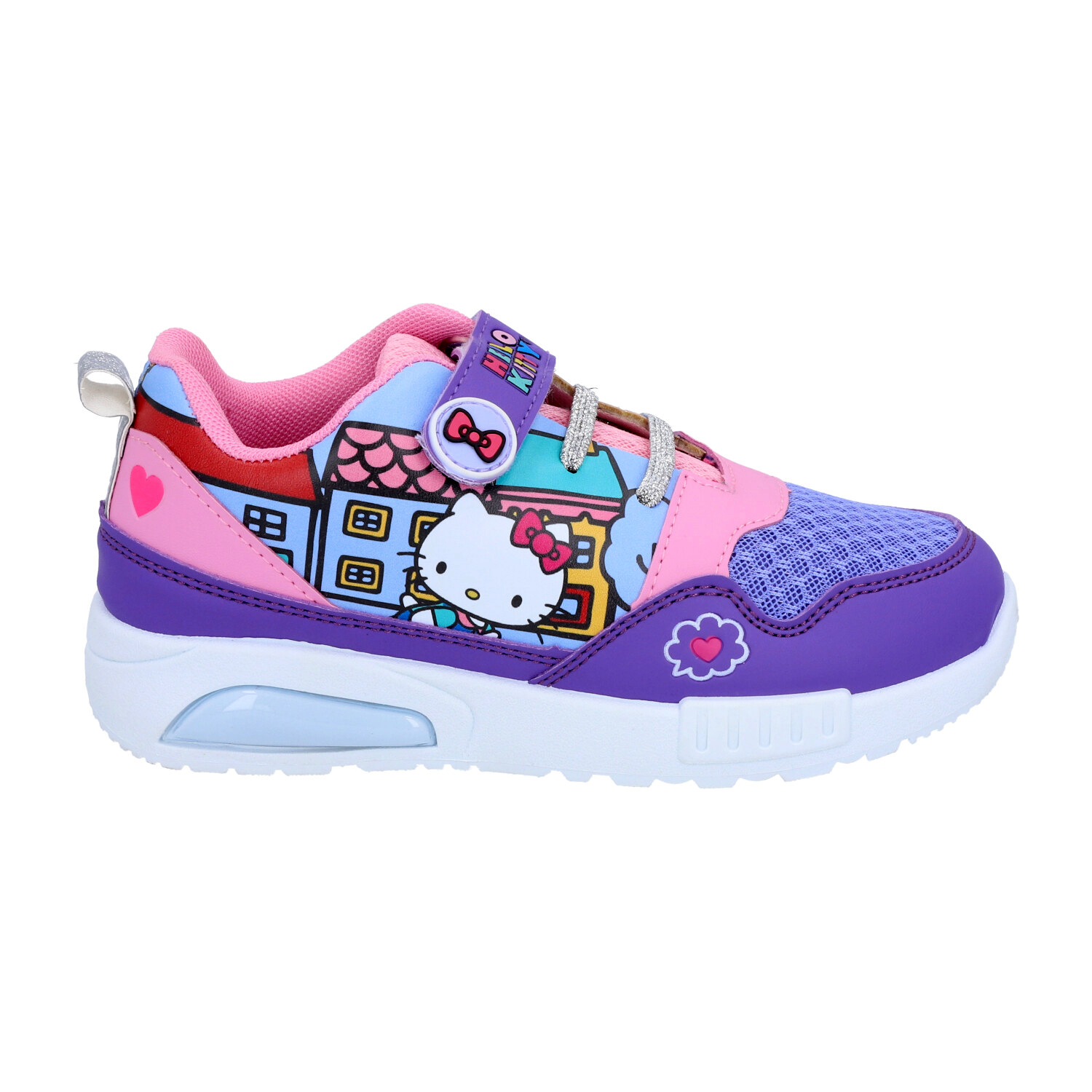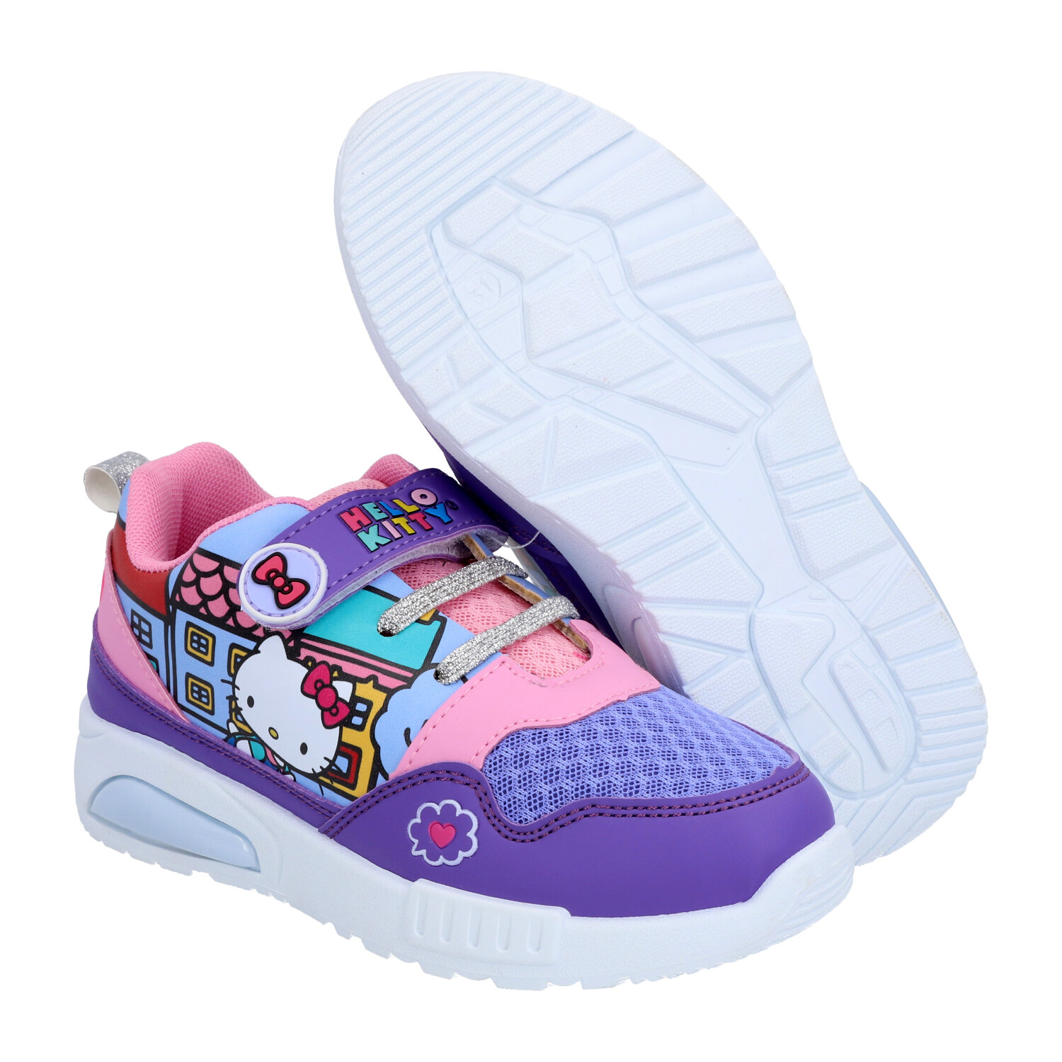 Zapatilla urbana Hello Kitty con luces* en la planta, detalles en glitter y sujeta cordones de velcro.
