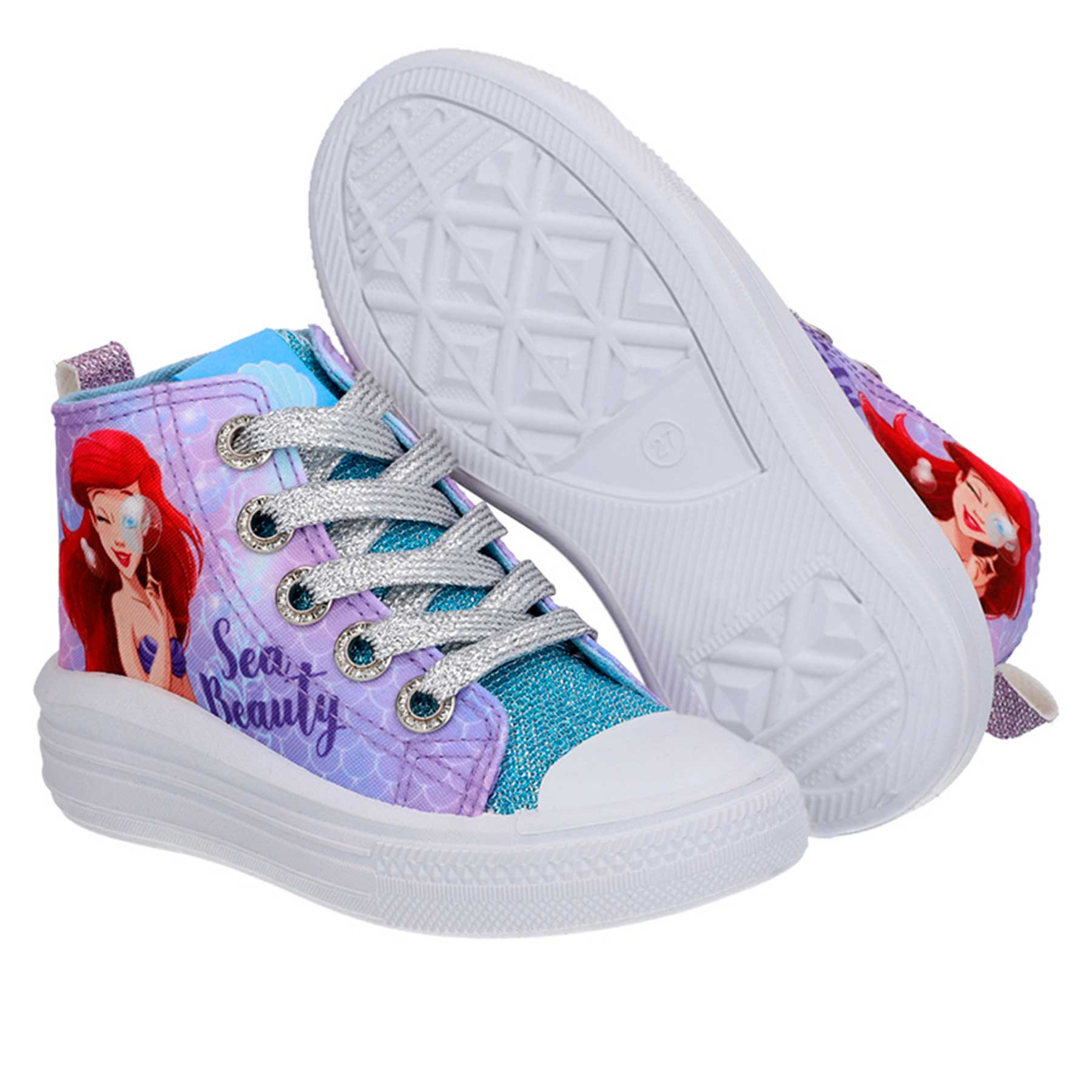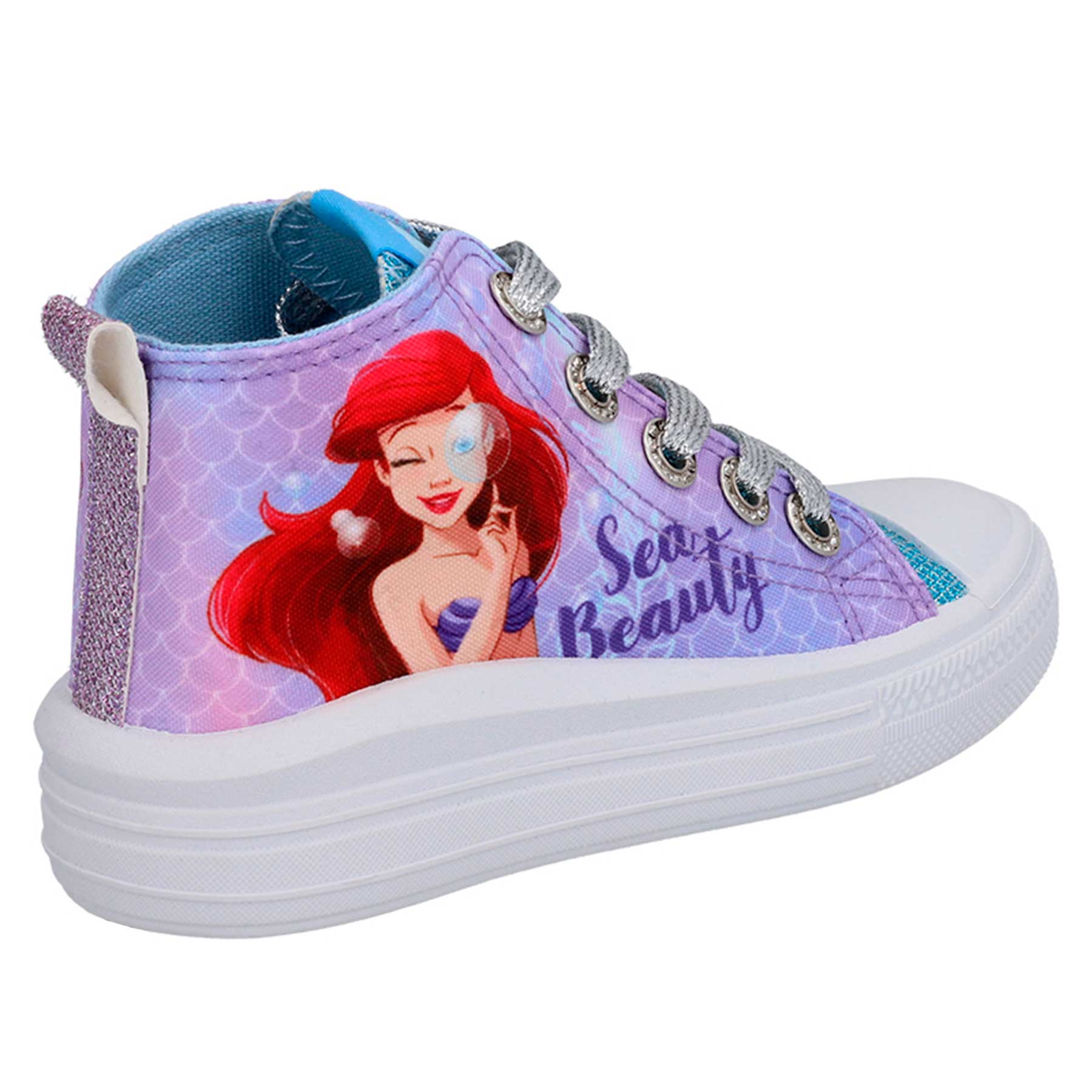 Zapatilla urbana Princesa Disney de lona caña alta, con plataforma, cordones y lengüeta de acabado metálico.