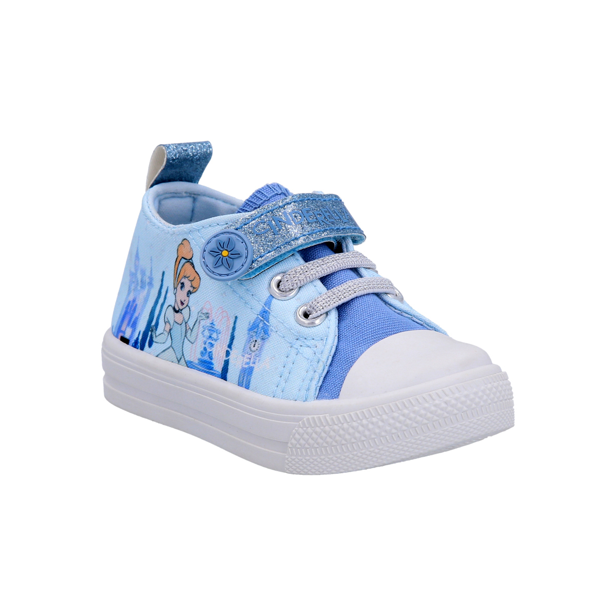 Zapatilla urbana Princesa Disney de lona, con cordones metalizados y sujeta cordones de velcro con glitter.