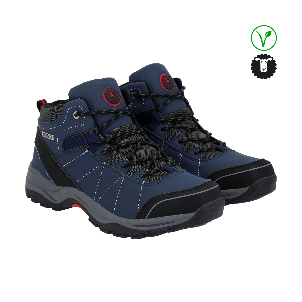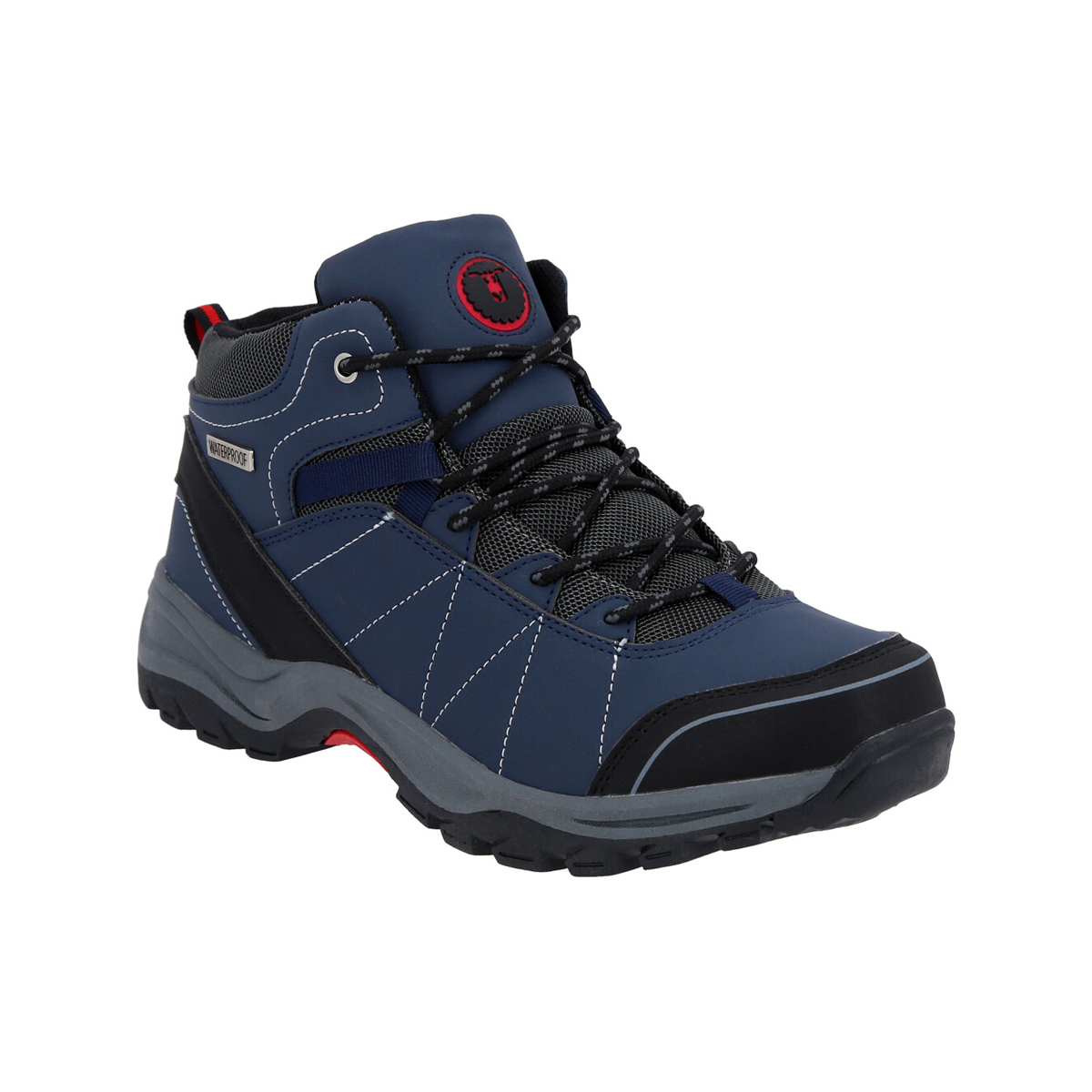 Zapato Outdoor de trekking impermeable caña alta. Confeccionado con una combinación de malla multicapa de alta resistencia y cuero sintético (PU).