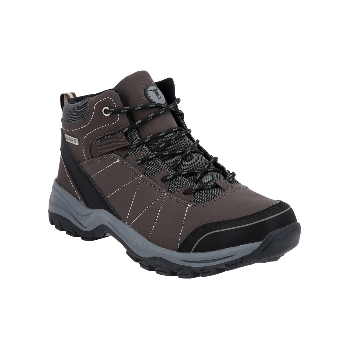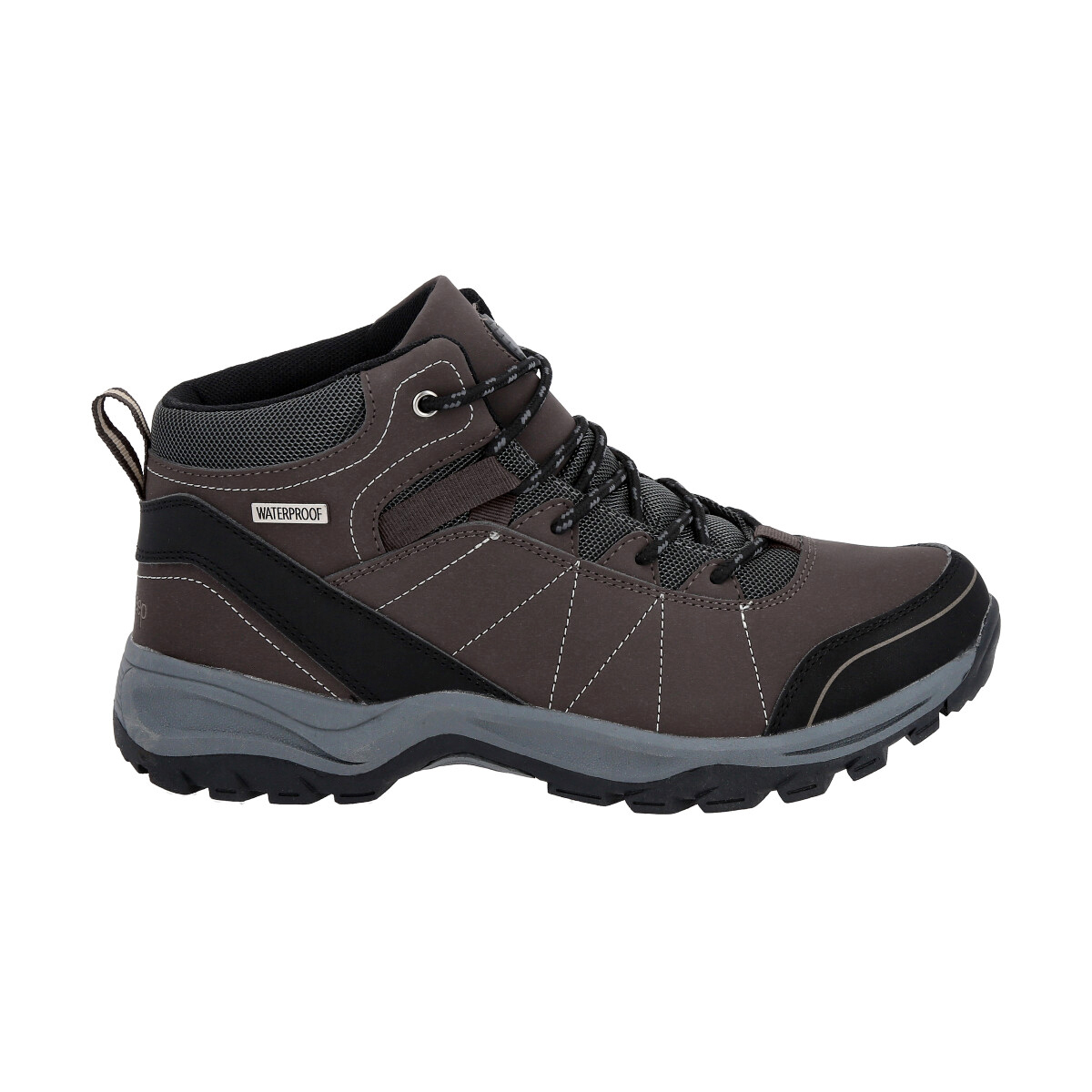 Zapato Outdoor de trekking impermeable caña alta. Confeccionado con una combinación de malla multicapa de alta resistencia y cuero sintético (PU).